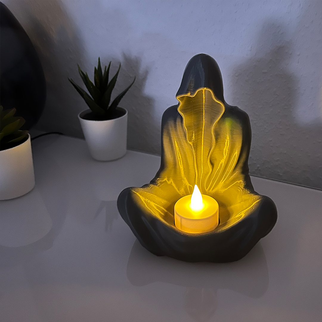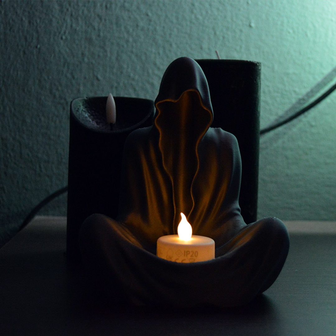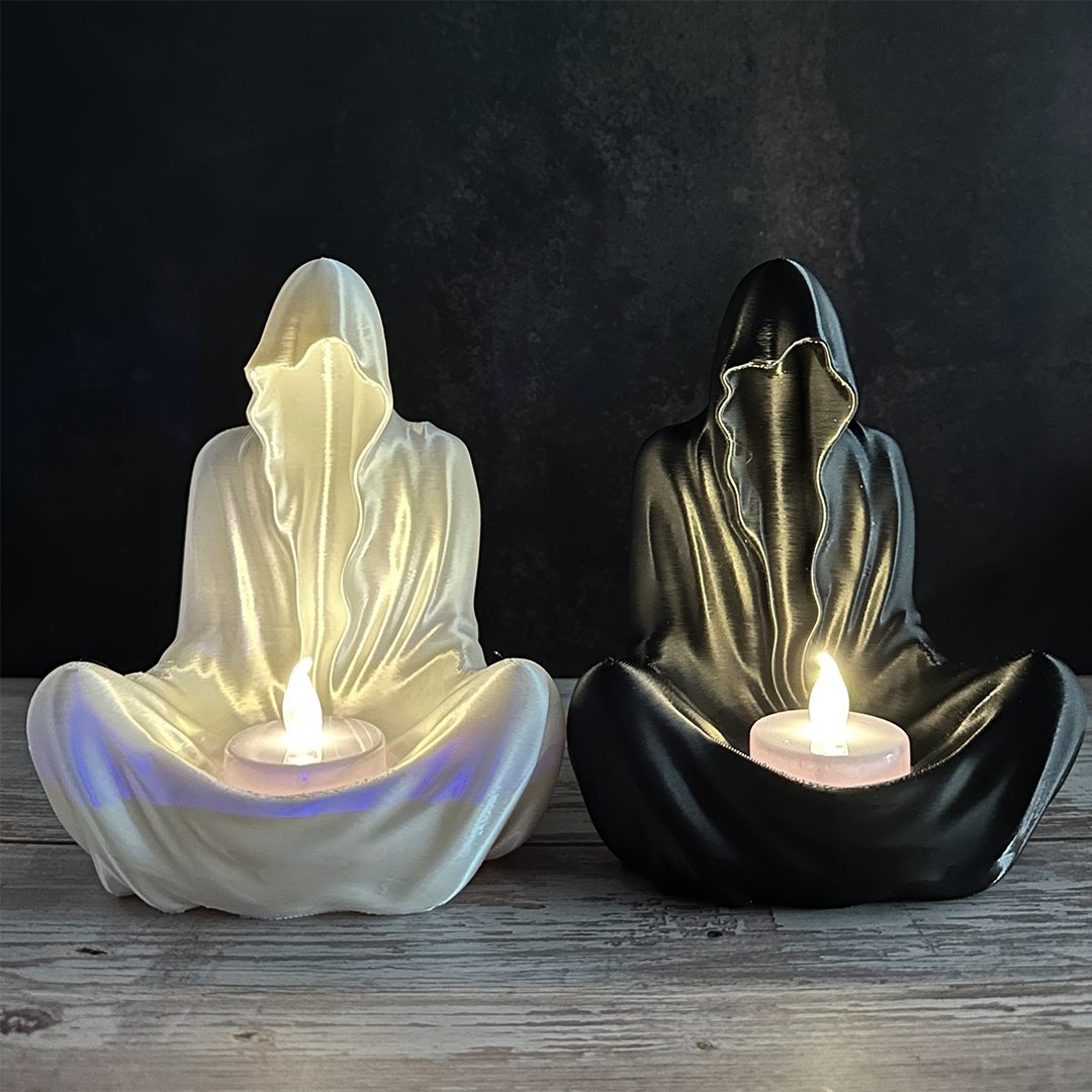 این جاشمعی شبح، ترکیبی از بامزگی و حس ترس ملایمه! وقتی شمع روشن میشه، یه نور جادویی از بینش رد میشه و فضا رو خاص و گرم می‌کنه. برای دکور خونه یا هدیه دادن به کسی که چیزای خاص دوست داره، عالیه.